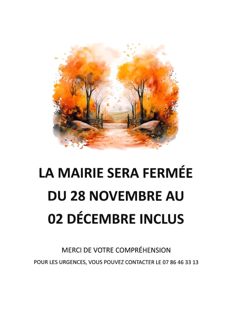 Fermeture de la Mairie du 28 Novembre au 02 Décembre inclus