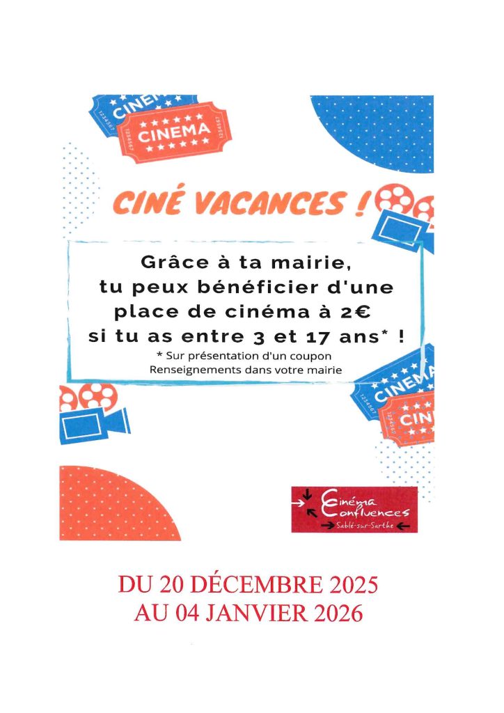 Ciné Vacances du 20 Décembre au 04 Janvier 2026