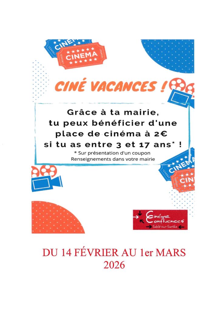 Ciné Vacances du 14 Février au 1er Mars 2026