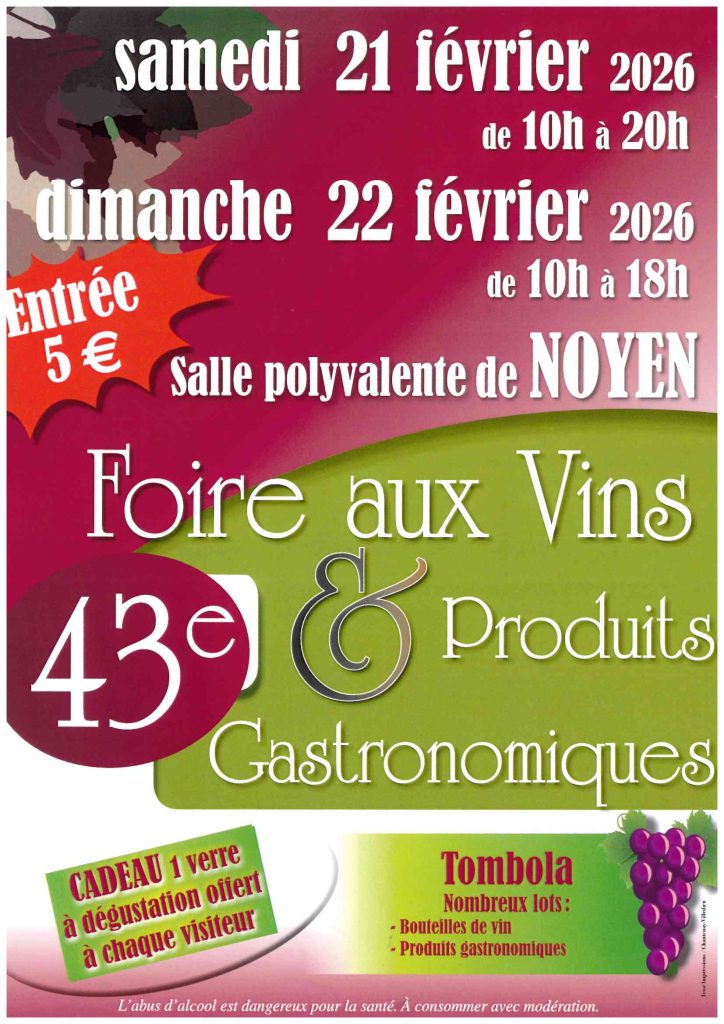 Foire aux Vins et Produits Gastronomiques les 21 et 22 Février à Noyen