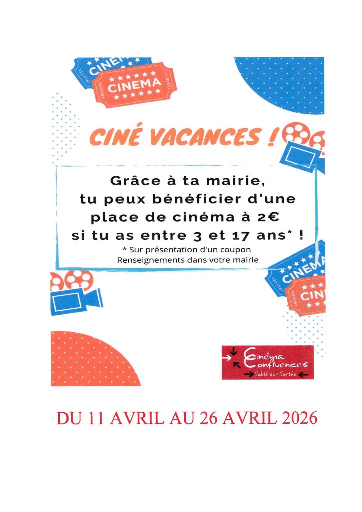 Ciné vacances du 11 au 26 avril