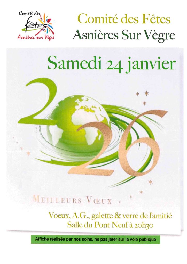 Assemblée Générale et Galette du Comité des Fêtes Samedi 24 Janvier à 20h30 salle du Pont Neuf
