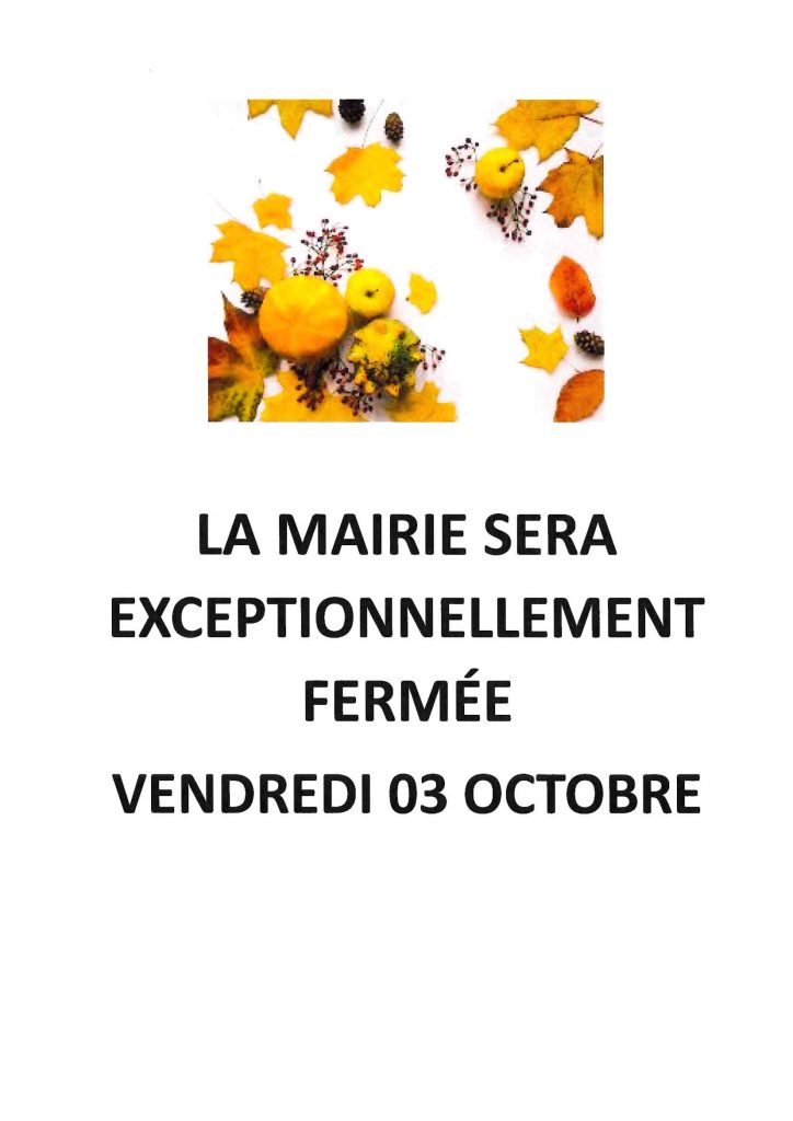 Fermeture exceptionnelle de la mairie vendredi 03 octobre