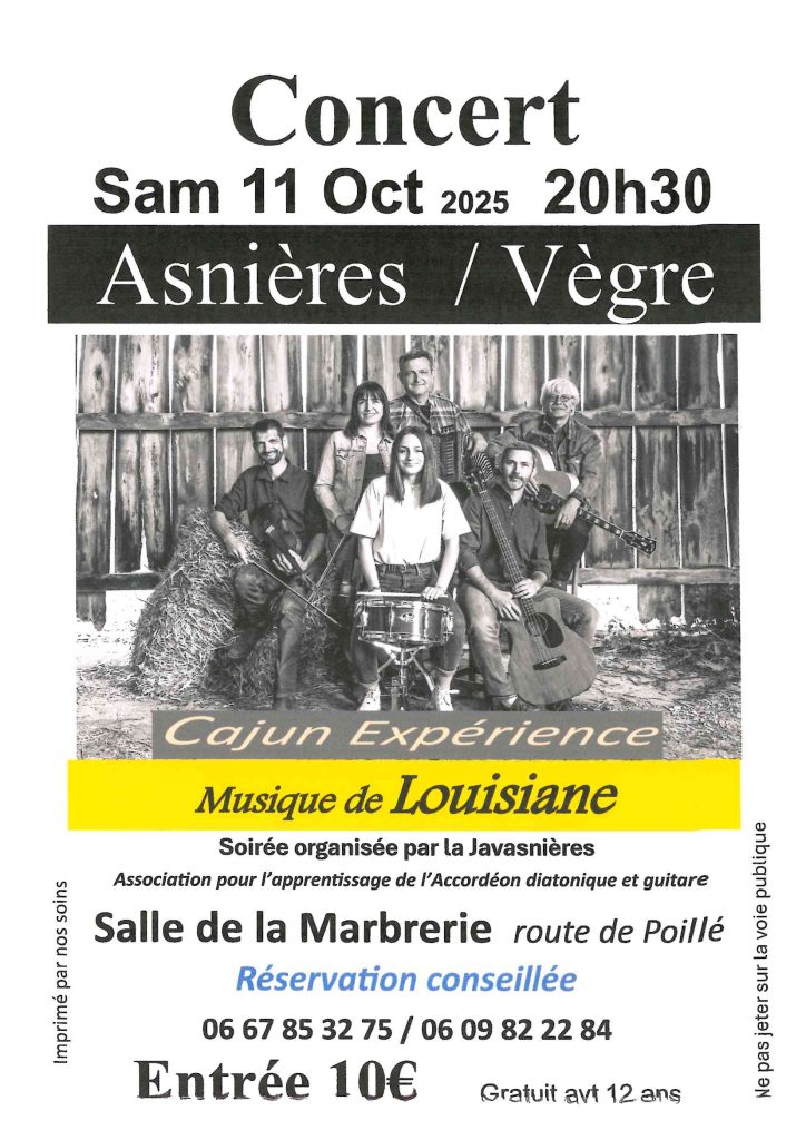Concert samedi 11 octobre salle de la Marbrerie organisé par la Javasnières