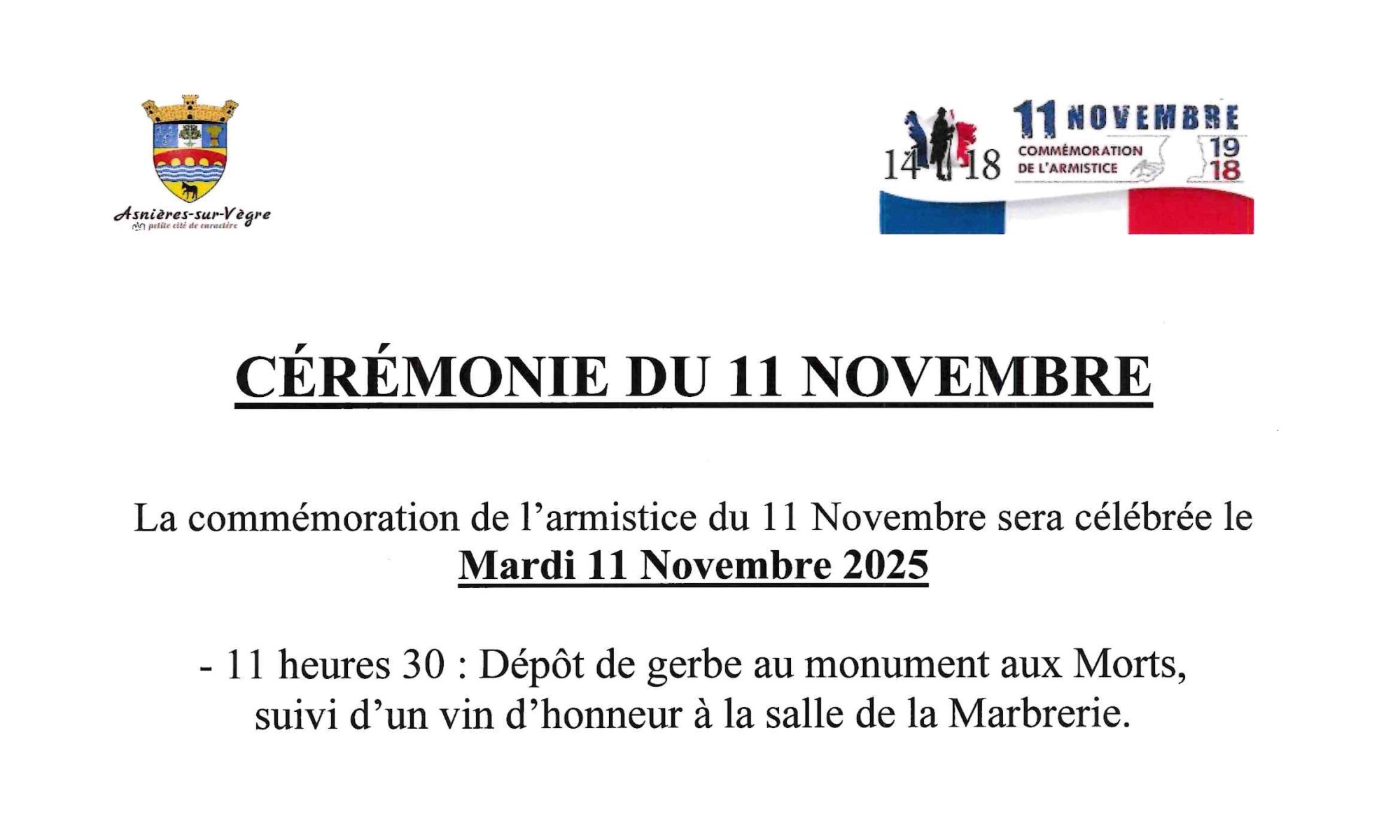 Commémoration du 11 Novembre : dépôt de gerbe au monument aux morts à 11h30