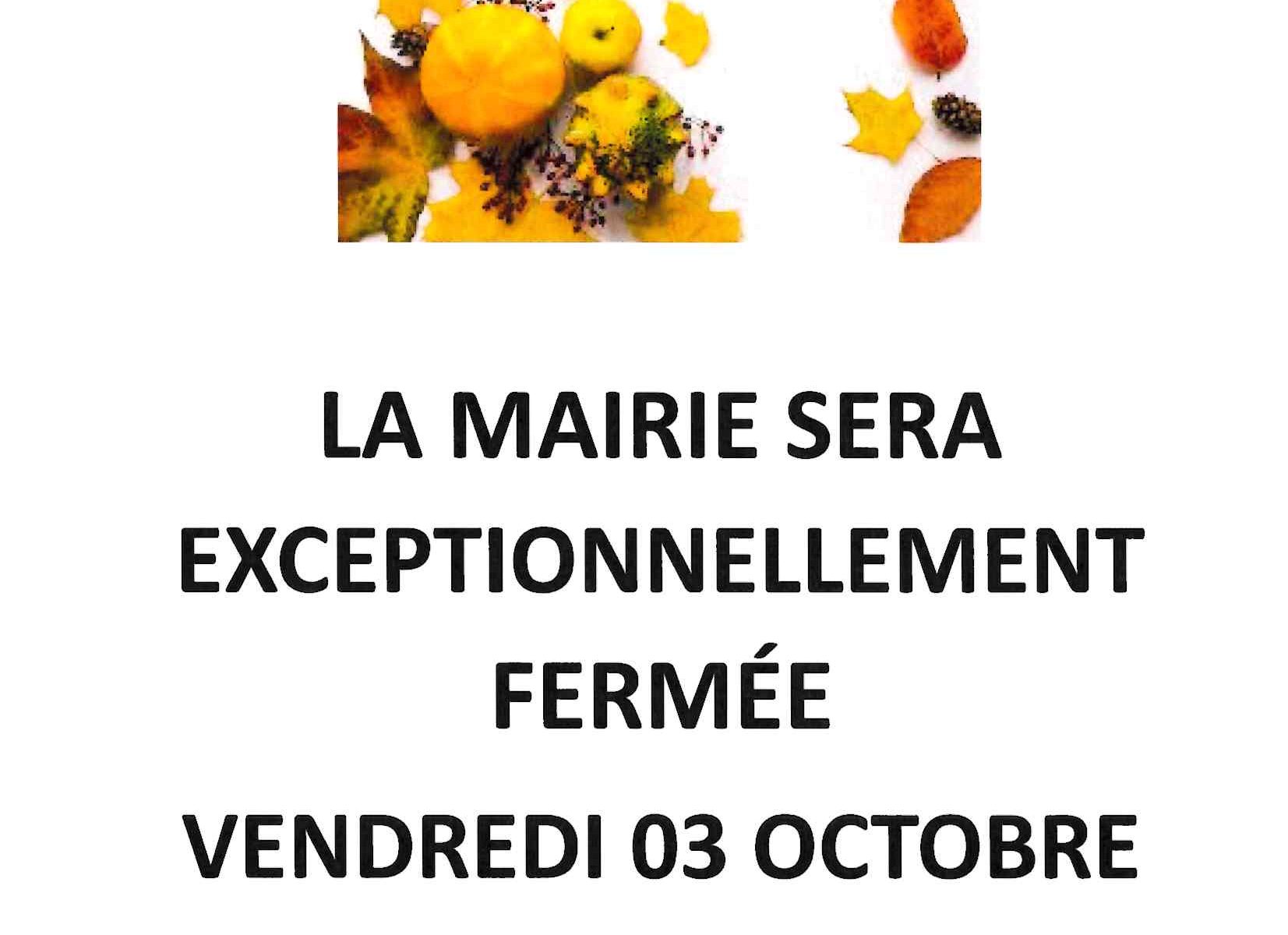 Fermeture exceptionnelle de la mairie vendredi 03 octobre