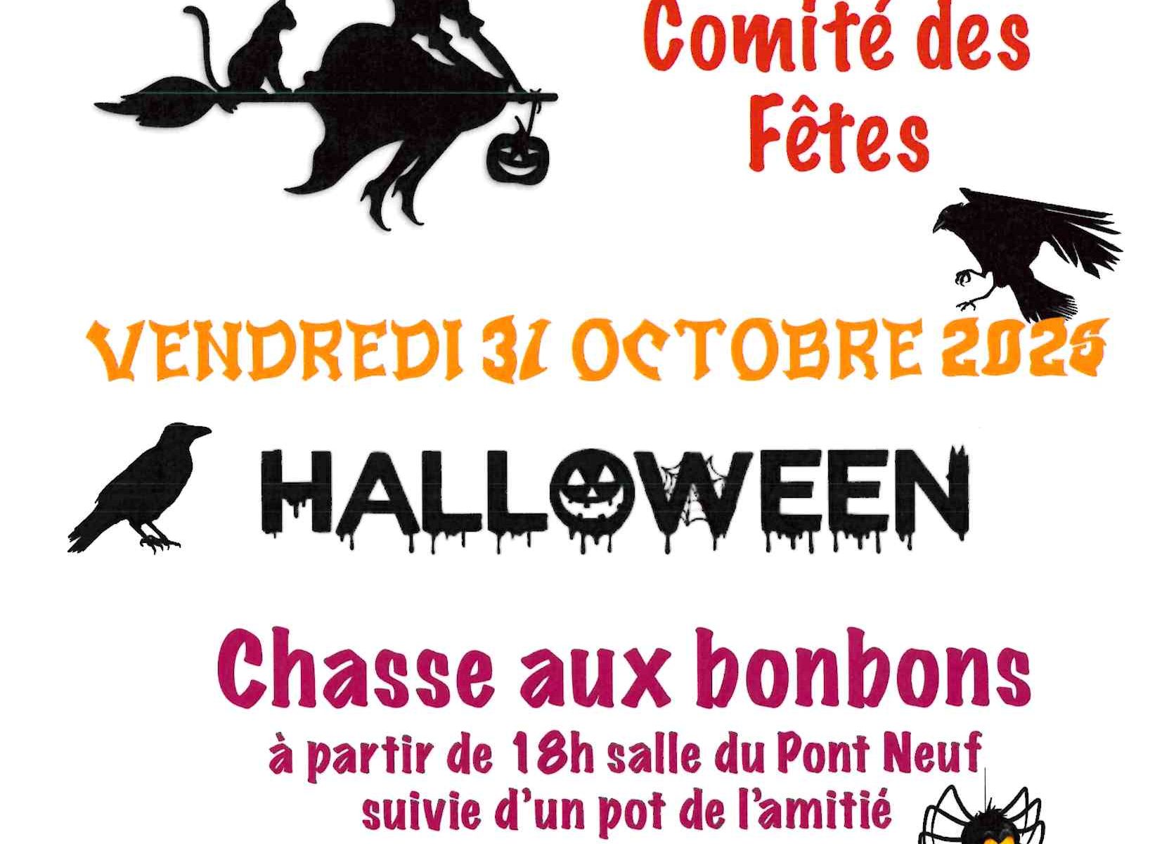 Halloween vendredi 31 octobre : chasse aux bonbons organisée par le comité des fêtes